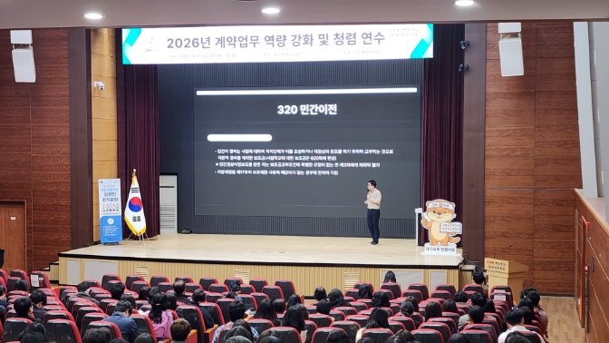또한 최근 제기된 계약 관련 민원 사례와 개선 방안을 공유하고 ▲계약 사전 검토 철저 ▲관련 규정 준수 ▲계약상대자 중심의 공정한 업무처리 등을 강조할 예정이다.