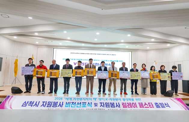 [뉴스앤톡] 삼척시자원봉사센터(센터장 김성진)는 3월 31일 삼척시청 대회의실에서 ‘2026 세계 자원봉사자의 해’를 맞아 나눔과 봉사로 행복한 지역사회를 실현하고자 '2026 삼척시 자원봉사 비전 선포식 및 자원봉사 릴레이 페스타 출발식'을 개최했다.