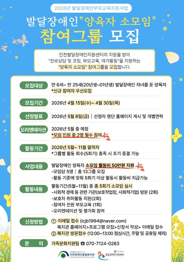 | ▲ 인천장애인종합복지관, 발달장애인 양육자 소모임 모집 |