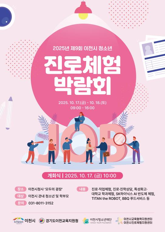이번 박람회는 이천시 관내 청소년과 학부모는 물론 학교 밖 청소년 과 일반 시민까지 참여할 수 있도록 문을 활짝 열어, 지역사회 모두가 함께하는 진로 축제의 장을 마련한다.