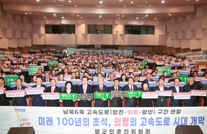 [뉴스앤톡] 의령군은 24일 의령군민문화회관에서 ‘남북6축 고속도로 합천–의령–함안 구간 연장 범군민 추진위원회 발대식 및 결의대회’를 열고 고속도로 연장 사업 추진을 공식 선언했다.