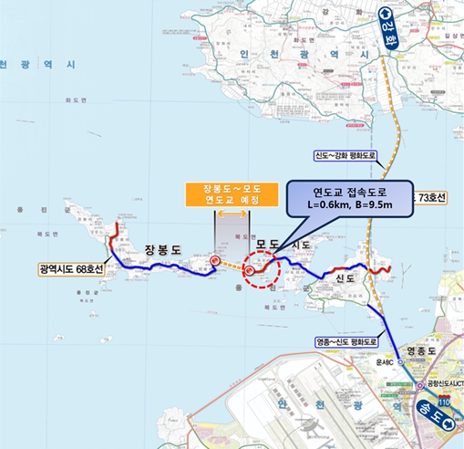 특히 이번 행정절차는 2025년 제1차 예비타당성조사 대상사업으로 선정돼 현재 한국개발연구원(KDI)에서 조사가 진행 중인 ‘장봉도~모도 연도교’사업과, 2026년 5월 개통 예정인 ‘영종~신도 평화도로’를 유기적으로 연결하는 중요한 교통축에 해당한다.