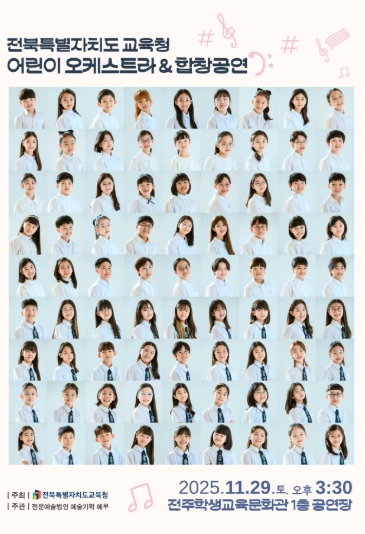 [뉴스앤톡] 전북특별자치도교육청은 오는 29일 전주학생교육문화회관 1층 공연장에서 ‘2025 전북특별자치도교육청 어린이 오케스트라 & 합창공연’을 개최한다.