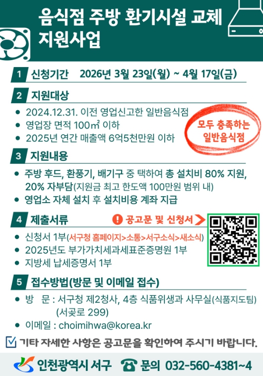 | ▲ 인천 서구, 음식점 주방 환기시설 교체 지원 |