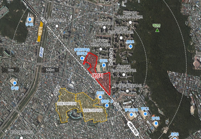 또한 용도지역 상향 '제2종일반주거지역(7층 이하)·제2종일반주거지역→제3종일반주거지역'과 사업성 보정계수 적용으로 사업성을 개선해 사업 실현성을 높였다.