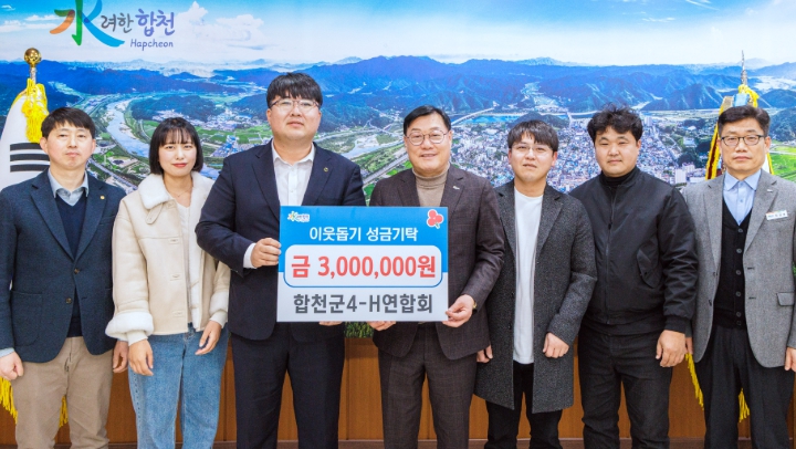 이번 성금은 4-H 회원들이 2025년 공동과제로 진행한 콩 재배 공동학습포 수익금으로 마련됐으며, 합천군 관내 소외계층을 지원하는 데 사용될 예정이다.