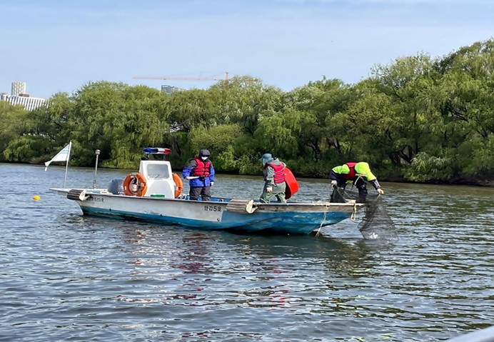 [뉴스앤톡] 서울시는 23일 오전, 서강대교 하부 밤섬 인근에서 한강 어종조사를 실시했다. 이는 매년 2회씩 정기적으로 한강 본류 6개 지역 8개 지점에서 이뤄지는 조사다.