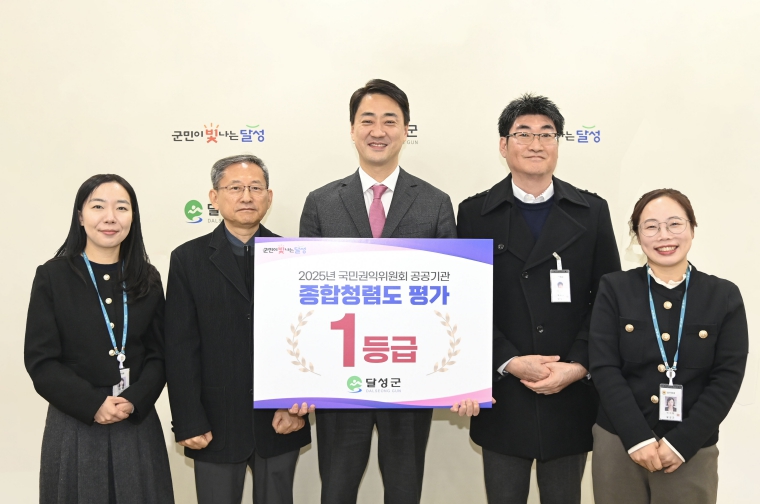 [뉴스앤톡] 대구 달성군이 국민권익위원회가 발표한 ‘2025년 공공기관 종합청렴도 평가’에서대구·경북지역 기초자치단체 중 유일하게 최고 등급인 1등급을 획득하며 명실상부한 ‘청렴 도시’로 인정받았다.