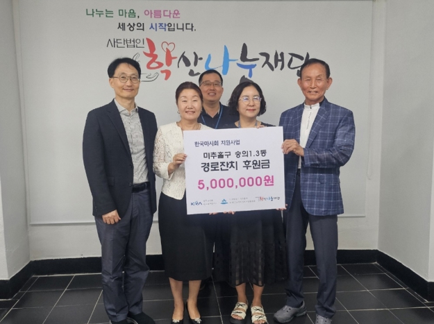 [뉴스앤톡] 미추홀구 숭의1·3동 지역사회보장협의체(위원장 민명숙)는 한국마사회 인천미추홀지사(지사장 조영진)의 공모사업에 ‘숭의1·3동 경로잔치’가 선정돼 지난 18일 기부금 500만 원을 전달받았다.