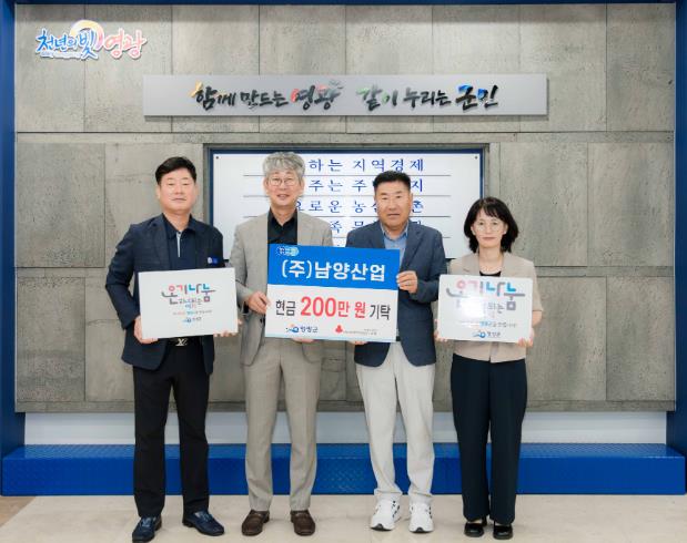 [뉴스앤톡] 영광군은 지난 21일, 주식회사 남양산업(대표 이봉권)이 지역의 취약계층 지원을 위해 성금 200만 원을 기탁했다고 밝혔다.