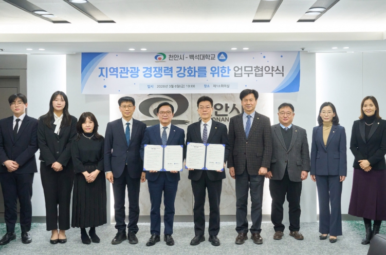 [뉴스앤톡] 천안시가 백석대학교와 손을 잡고 지역관광 경쟁력 강화와 전문 인재 양성을 위한 체계적인 협력 체계 구축에 나선다.