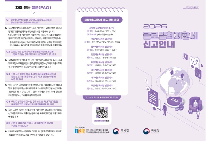 앞으로도 국세청은 기업의 성실신고를 적극적으로 지원함으로써 글로벌최저한세 제도가 안정적으로 정착될 수 있도록 지속적으로 노력할 계획이다.