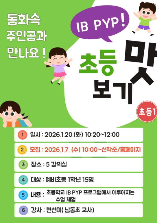 | ▲ ‘초등 IB PYP 프로그램맛보기 수업’수강생 모집 |