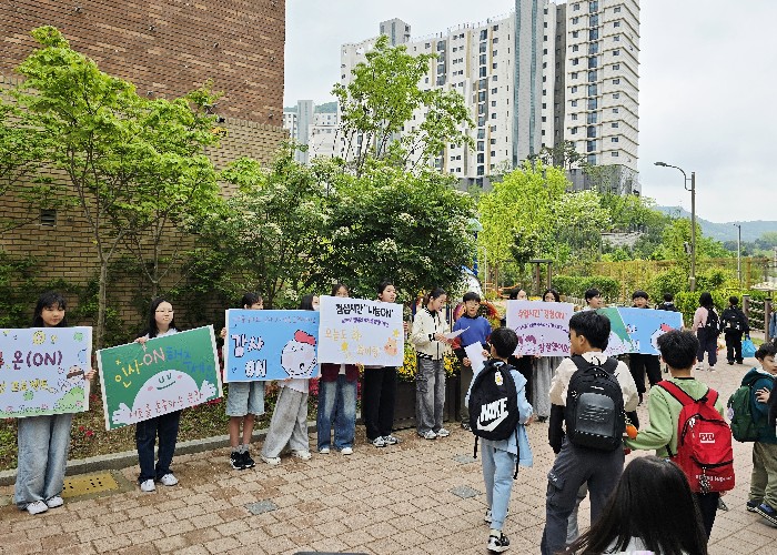 캠페인은 학생자치회 주도로 진행됐으며, 등교 시간에 전교생을 맞이하며 밝은 인사와 바른 언어 사용을 실천하는 방식으로 운영됐다.