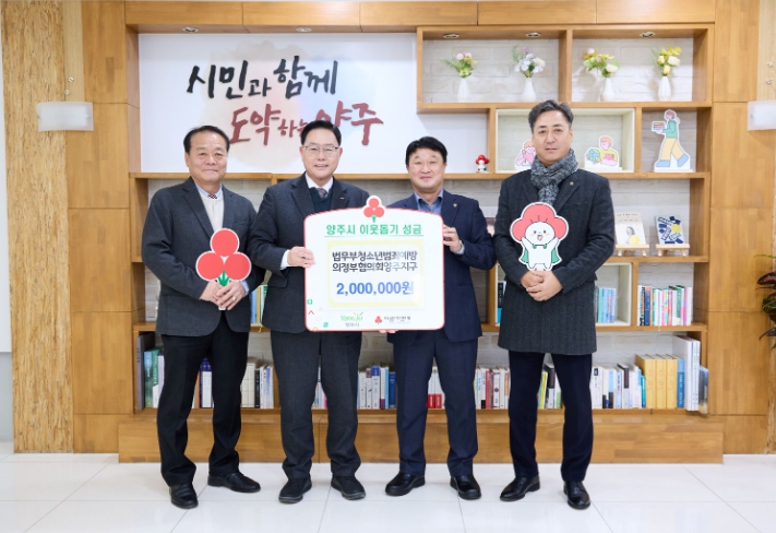 [뉴스앤톡] 양주시는 지난 30일 시장실에서 법무부청소년범죄예방 의정부협의회 양주지구로부터 이웃돕기 성금 200만 원을 기탁받았다고 밝혔다.