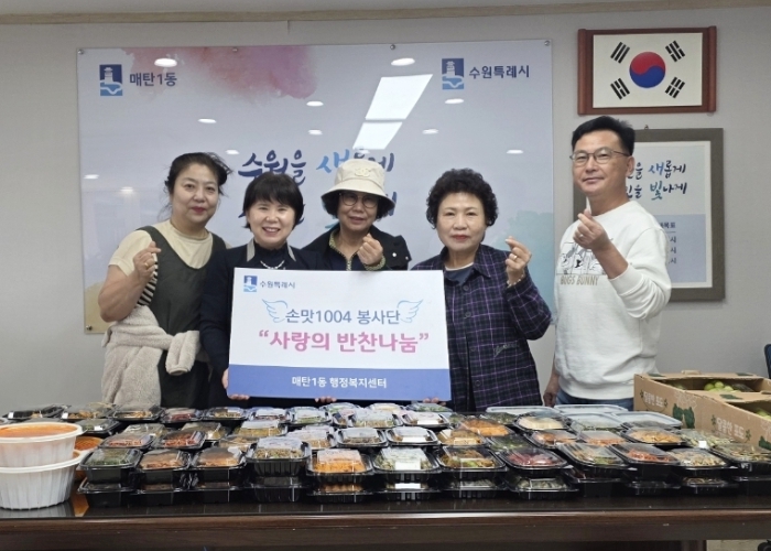 김은정 매탄1동장은 “푸짐한 반찬봉사를 해주신 손맛1004봉사단의 따뜻한 마음에 감사드린다. 손맛1004 회원들의 정성이 듬뿍 담긴 반찬들은 필요한 가정에 잘 전달드리겠다”며 감사의 미소를 지어 보였다.