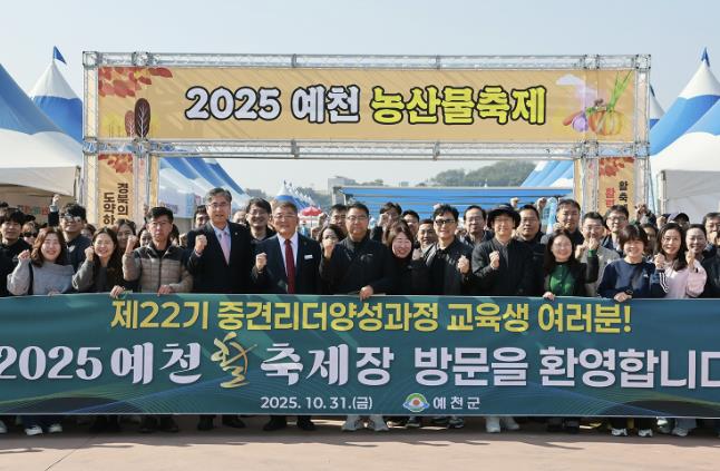 [뉴스앤톡] 예천군은 31일, 경상북도 인재개발원 제22기 중견리더양성과정 교육생 113명이 한천체육공원을 찾아 ‘2025 예천활축제·농산물축제’를 둘러보고 주요 프로그램을 체험했다고 밝혔다.