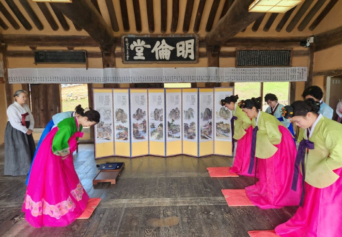 이날 참가자들은 단정한 예복을 갖춰 입고, 남학생은 관(冠)을, 여학생은 비녀(笄)를 꽂는 전통 관례와 계례 의식을 엄숙하게 체험했다.