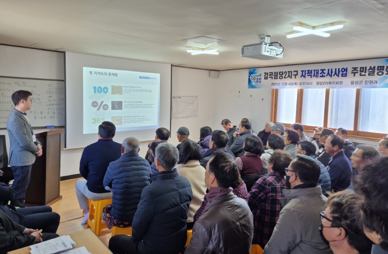 [뉴스앤톡] 음성군은 4일 감곡면 원당2리 복지회관에서 2026년도 591필지(75만5146㎡) 감곡원당2지구 지적재조사사업에 대한 주민설명회를 개최했다.