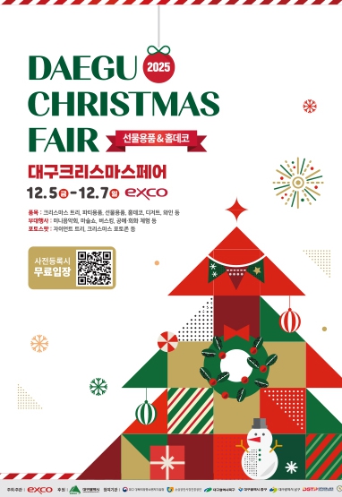 [뉴스앤톡] 대구 북구청은 오는 2025년 12월 5일부터 7일까지 3일간 엑스코 서관 제1전시장에서 열리는 ‘2025 대구 크리스마스페어’에 참여해 관광홍보부스를 운영하여 북구가 가진 다양한 관광매력을 방문객들에게 선보일 계획이다.