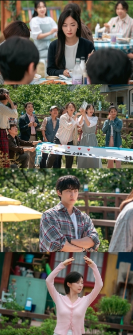 하지만 따뜻한 미소와 플랜카드로 부세미 선생님을 환영하는 마을 사람들과 달리 전동민의 얼굴에는 여전히 의심이 가득한 상황. 설상가상 부세미의 정체를 알고 있는 백혜지(주현영 분)가 직접 축하공연을 예고하면서 파티는 예측불허의 전개로 이어질 예정이다.
