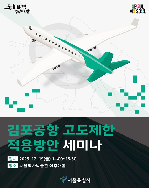 서울시는 고도제한 국제기준 개정에 따른 김포공항 주변 고도관리 방향과 국내 적용 방안을 모색하기 위해 12월 19일 14시 서울역사박물관(야주개홀)에서 '김포공항 고도제한 적용방안' 세미나를 개최한다고 밝혔다.