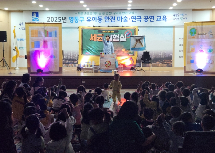 [뉴스앤톡] 수원시 영통구는 2025. 10. 13. 영통구청 대회의실에서 관내 유아를 대상으로 안전한 위생 습관을 형성하기 위한 ‘찰리박사의 세균실험실’ 체험형 안전마술·연극 공연 교육을 실시했다.