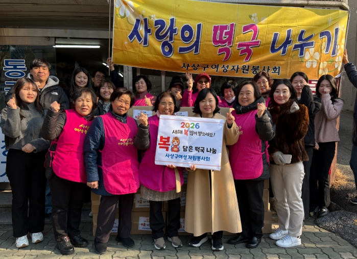 [뉴스앤톡] 부산 사상구는 지난 23일 사상구여성자원봉사회가 ‘2026년 복(福) 담은 떡국 나눔’ 행사를 통해 관내 저소득가정 100세대에 떡국떡을 후원했다고 밝혔다.