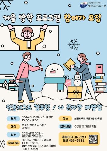 | ▲ 철원교육도서관, 2026년 겨울방학 초등학생 대상 디지털 창의 프로그램 운영 안내 |
