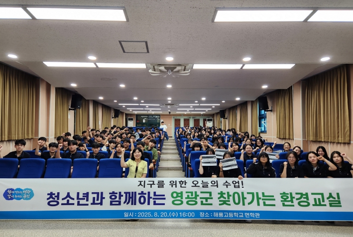 [뉴스앤톡] 영광군은 미래세대의 환경 의식을 높이고 기후위기에 대응하는 탄소중립 생활 실천을 확산하기 위해 해룡고등학교 1학년 학생 150명을 대상으로 ‘청소년과 함께하는 찾아가는 환경교실’을 실시했다고 밝혔다.