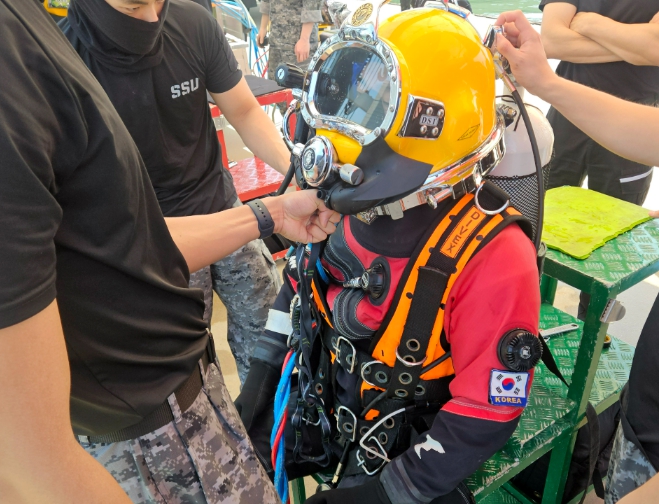 공기호스를 지상과 연결하여 장시간 안정적인 수색구조 활동이 가능한 △ SSDS 및 챔버 운용절차 및 팀워크 숙달훈련과 △ ROV(수중드론)을 활용한 서해환경에서의 수색기법 논의 및 현장운용 훈련을 실시했다.