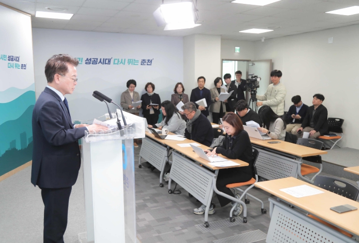 육동한 춘천시장은 5일 시청 브리핑룸에서 브리핑을 열고 지난 4일 열린 THE 건강한 춘천 2030 비전 공유회에서 제시한 ‘THE 건강한 춘천’ 기본계획을 발표했다.