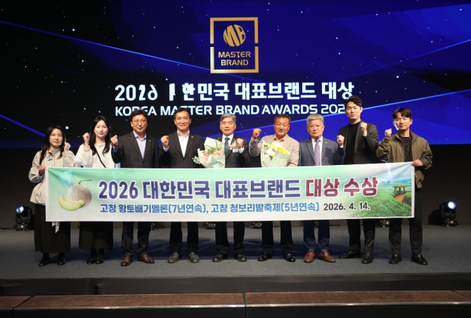 [뉴스앤톡] 고창군이 14일 서울 신라호텔에서 열린 ‘2026 대한민국 대표브랜드 대상’ 시상식에서 ‘고창 황토배기멜론’과 ‘고창 청보리밭축제’가 나란히 대상을 수상하며, 지역 대표 브랜드의 경쟁력을 입증했다.