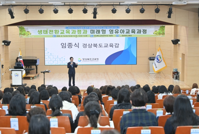 [뉴스앤톡] 경북교육청은 16일 구미시에 있는 경상북도교육청연수원 대강당에서 도내 유치원과 어린이집 교원 500여 명이 참석한 가운데 ‘2026 지속가능발전 유아 생태전환교육과정 교원 역량 강화 연수’를 개최했다고 밝혔다.