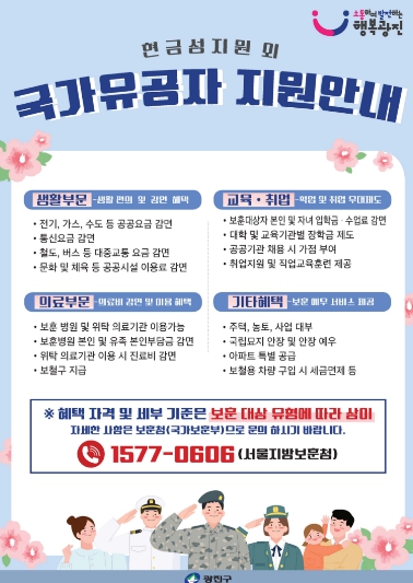 구는 온라인 홍보도 병행해 정책·정보 안내를 이어간다. 광진구청 누리집과 공식 사회관계망서비스(SNS)에서 보훈 대상자와 가족, 구민 누구나 확인할 수 있도록 할 계획이다.