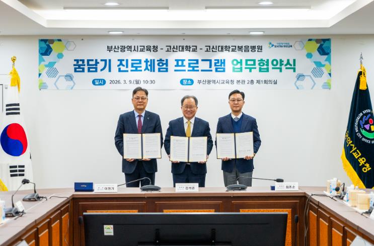 [뉴스앤톡] 부산광역시교육청은 9일 오전 교육청 회의실에서 고신대학교, 고신대학교복음병원과 ‘꿈담기 진로체험 프로그램’운영을 위한 업무협약을 체결했다.