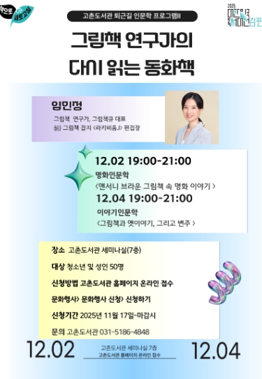 수강 신청은 사전 온라인 접수를 통해 진행하며, 참여를 원하는 시민은 11월 17일 10시부터 고촌도서관 홈페이지 문화행사를 통해 신청하면 된다.
