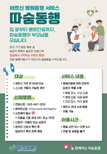 제천형 따숨동행 서비스는 병원 이용 시 보호자의 동행이 어려워 불편을 겪는 65세 이상 어르신을 대상으로 전문 동행 서비스를 지원하는 사업이다.