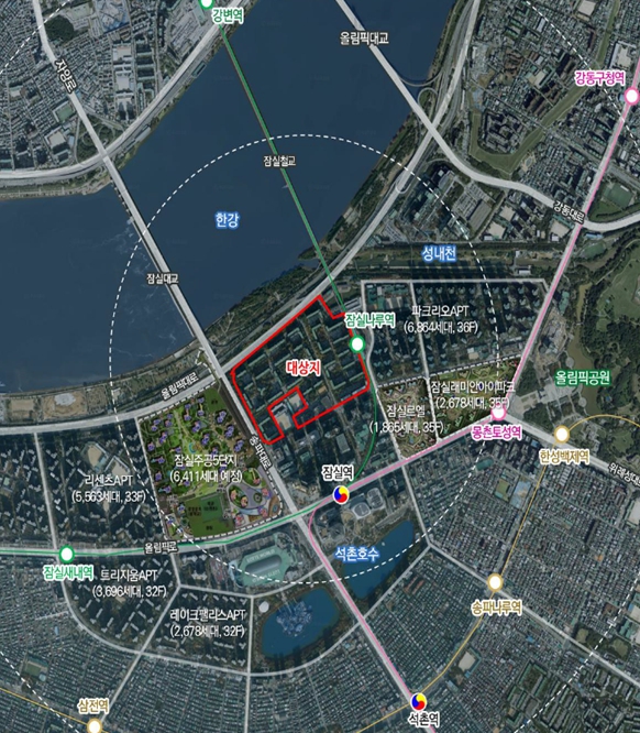 장미1·2·3차 아파트는 3,522세대 노후 주거단지로 주차공간이 부족하고, 노후 배관으로 녹물 발생 등 주거환경 개선이 시급한 곳이다. 한편으로는 한강과 역세권, 롯데월드몰, 올림픽공원 등 교통·자연·교육환경을 갖춘 우수한 입지적 특성을 갖추고 있으며, 잠실광역 중심의 배후 주거지로서의 개발 잠재력이 높은 지역이기도 하다.