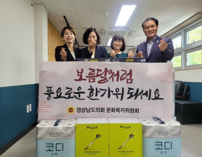 [뉴스앤톡] 경상남도의회 문화복지위원회(위원장 박주언)는 24일, 민족 고유의 명절인 추석을 앞두고 김해 장유1동 주민센터를 방문해 관내 지역아동센터 2곳에 위문품을 전달하고 시설운영 현황과 애로사항을 청취했다.