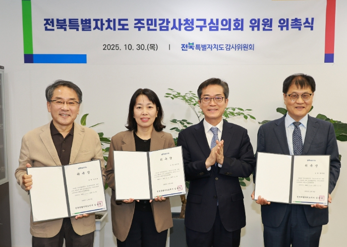 [뉴스앤톡] 전북특별자치도는 공정하고 투명한 행정 실현을 위해 주민감사청구심의회 민간 위원 4명을 위촉했다고 30일 밝혔다.