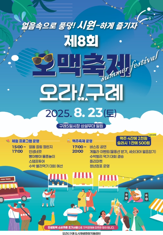 [뉴스앤톡] 전남 구례군은 오는 8월 23일 토요일 구례읍 5일시장 일원에서 '2025 구례 5일시장 제8회 오맥축제' 개최한다고 밝혔다.