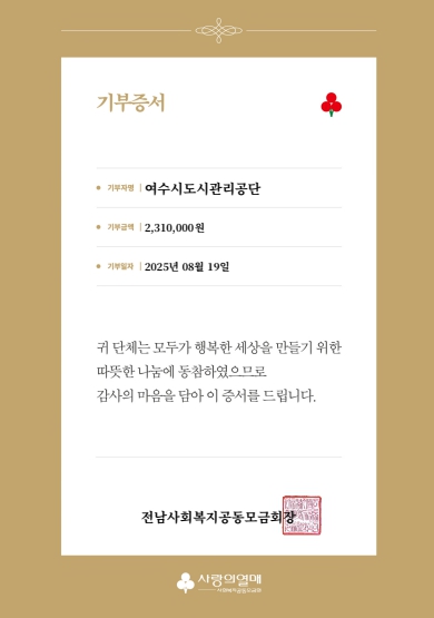 | ▲ 여수시도시관리공단, 호우피해 이웃돕기 성금기부로 지역상생 실천 |