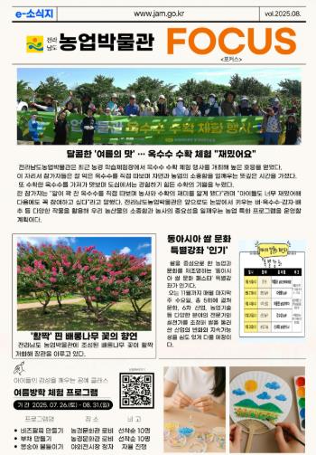 김옥경 전남도농업박물관장은 “농업박물관에서 진행하는 다양한 행사와 소식을 가장 빠르고, 효과적으로 전달하기 위해 e-소식지 ‘FOCUS’를 발행하게 됐다”며 “도민이 소식지를 통해 농업박물관의 다양한 이야기와 소식, 프로그램 등을 함께 공유하고 즐기길 바란다”고 말했다.