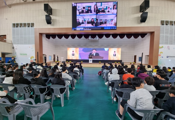 김 위원장은 축사를 통해 “김여선 교육장과 준비위원 여러분께 깊은 감사의 마음을 전한다”라며, “여러 학교가 함께 공동교육과정을 운영하고 그 성과를 나누는 오늘의 축제는 광양 교육이 지향하는 미래교육 혁신의 본보기”라고 평가했다.