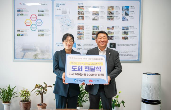[뉴스앤톡] 전주시는 23일 지역 대표 향토기업인 전북은행이 도서 200여 권(300만 원 상당)을 기부했다고 밝혔다.
