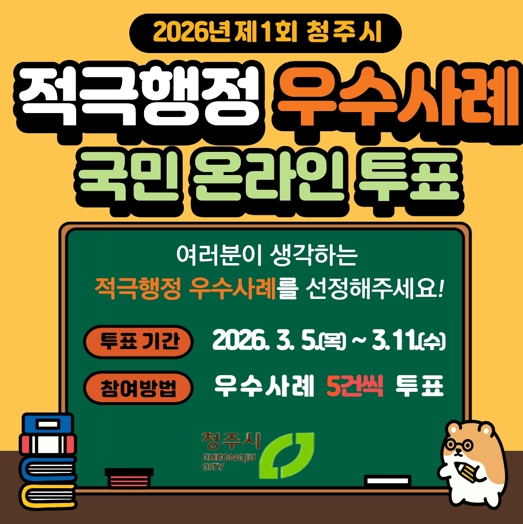 [뉴스앤톡] 청주시는 ‘2026년 제1회 적극행정 우수공무원 선발’ 공모 심사를 위한 시민 투표를 3월 11일까지 진행한다고 7일 밝혔다.