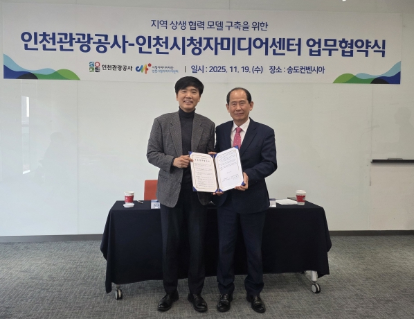 [뉴스앤톡] 인천관광공사와 인천시청자미디어센터는 전시산업과 미디어 콘텐츠를 융합한 지역 특화 협력 모델 구축을 위해 업무협약(MOU)을 체결했다고 밝혔다.