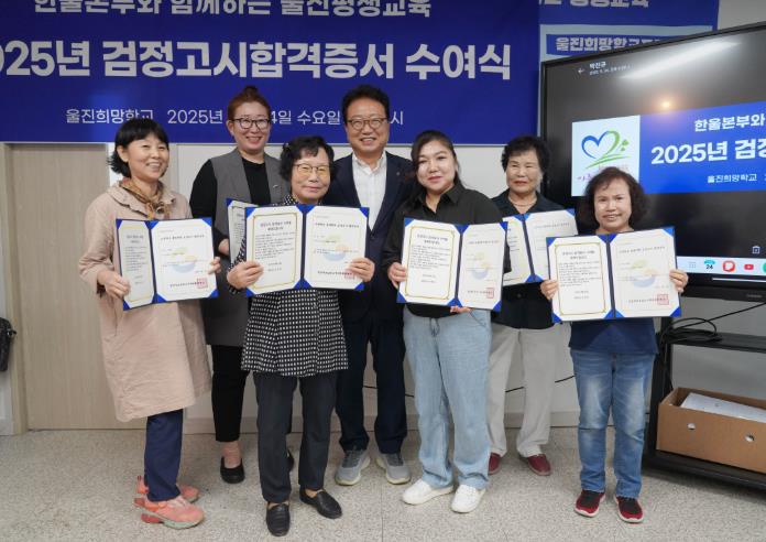 [뉴스앤톡] 울진희망학교는 지난 9월 24일 울진종합터미널 2층 교실에서‘2025년 검정고시 합격증서 수여식’을 가졌다.