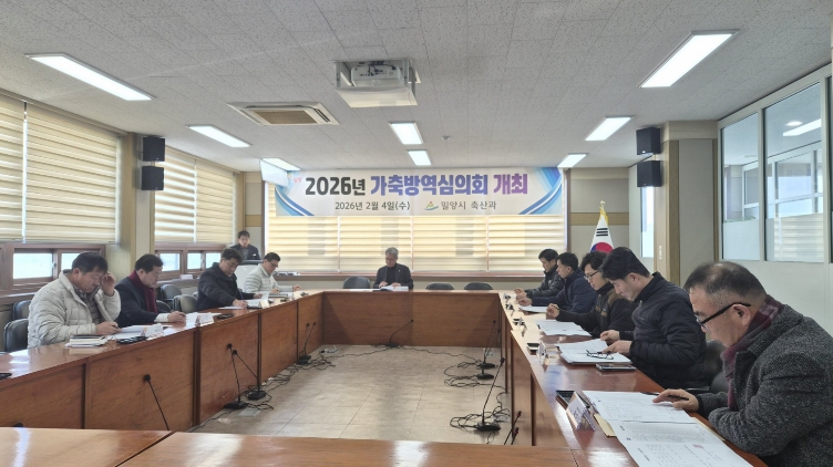 [뉴스앤톡] 경남 밀양시는 4일 농업기술센터 소회의실에서 ‘2026년도 가축방역심의회’를 개최하고, 가축 질병 없는 ‘청정 밀양’을 지키기 위한 방역 대책을 심의·의결했다.